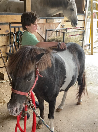 Next up was the feeding and grooming gentle giant horses. After thoroughly brushing both a pony and a horse, the boys each got a turn to experience their first ride.